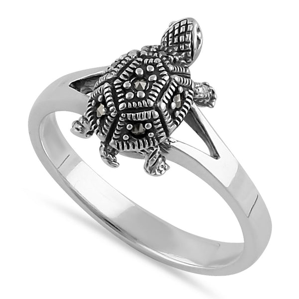 Sterling Silver Hand-Painted Turquoise Bird Marcasite Ring