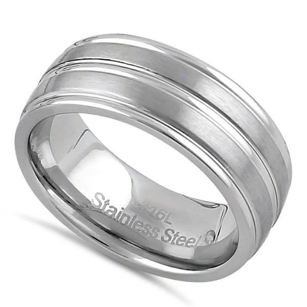 Stainless Steel Men's 8mm Brushed Polish with Grooves Wedding Band
